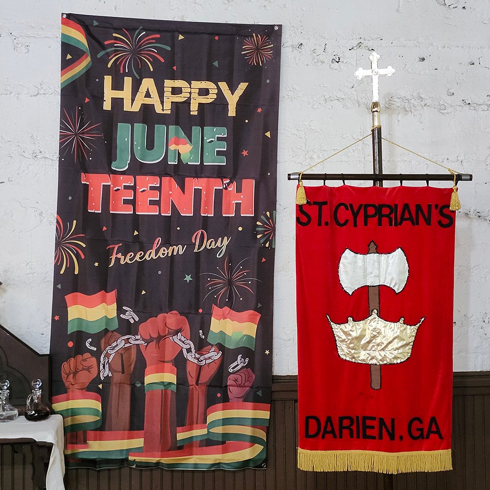 St. Cyprian’s Episcopal Church, located in Darien, Georgia, was built by former slaves. In December 1873, St. Cyprians was under the direction of the Rev. Ferdinand M. Mann, an African-American priest. During that time, St. Cyprian’s school was established for the education of African-American children in Darien. The school served the community for many years, and several of the current members of St. Cyprian’s received their initial education at the school. St. Cyprian’s is constructed of tabby according to the building methods of mid-19th-century coastal Georgia. It is believed to be one of the largest tabby structures still in use in Georgia. The building suffered extensive damage in the hurricane of 1896 and by another storm in 1898, but in each case the building was repaired and the congregation continued to worship..